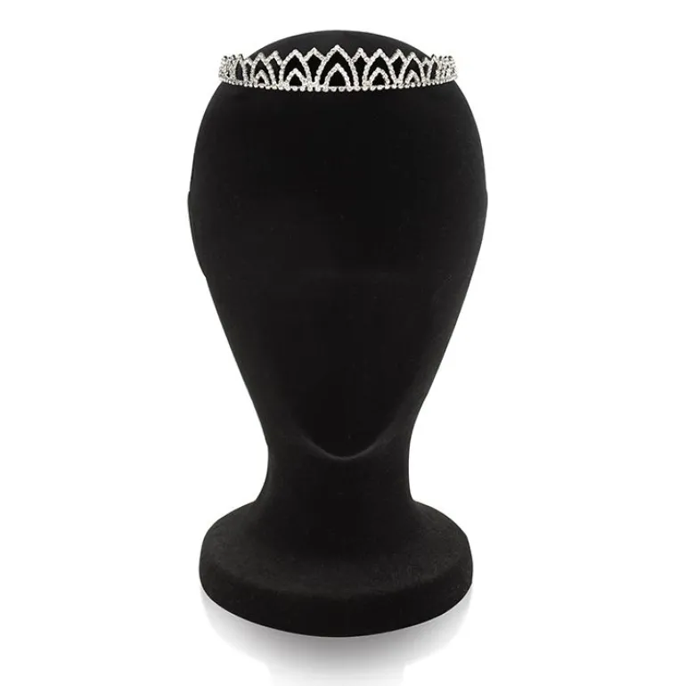 A Delicate Tiara With Arch Shape Details And Sparkling Crystals, Set Into A Base Metal Plated With White Gold.