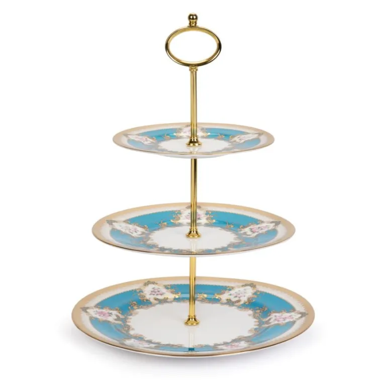 Complete Your Afternoon Tea Table Set Up With This Fabulous 3 Tier Cake Stand. Inspired By The Beautiful Hand Painted Plates Found In Buckingham Palace’S Royal China Pantry, This Cake Stand Is Elegantly Decorated With The Coat Of Arms Of King George Iv And King William Iv Surrounded By A Luxurious Turquoise Blue And Finished 22 Carat Gold Detail And Accents Of Blush Pink English Roses.
