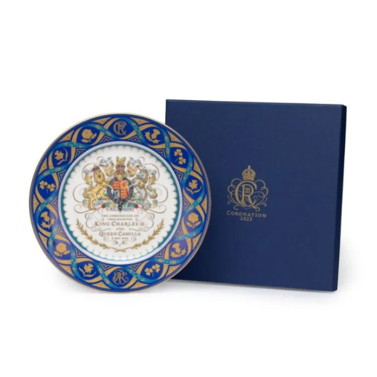 The Design On This Dessert Plate Features The Royal Coat Of Arms Supported By A Garland Of Laurel Leaves Representing Peace. Oak Leaves, For Strength, Are Joined By The National Emblems Of The Four Nations Of The United Kingdom – Thistle, Rose, Shamrock And Daffodil Within An Entwined Ribbon That Represents The Supportive Partnership Between The King And Queen.