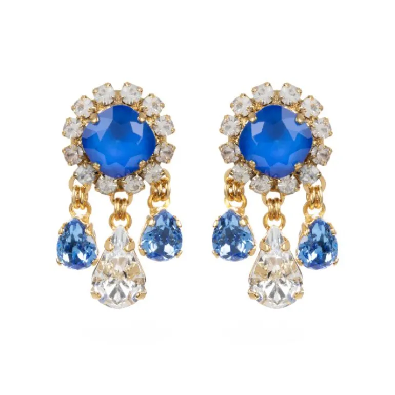Inspired By The Timeless Pieces Worn By Her Majesty The Queen. Make A Statement With Striking Blue, Hand-Painted Crystals With A Clear Tear Drop Crystal.