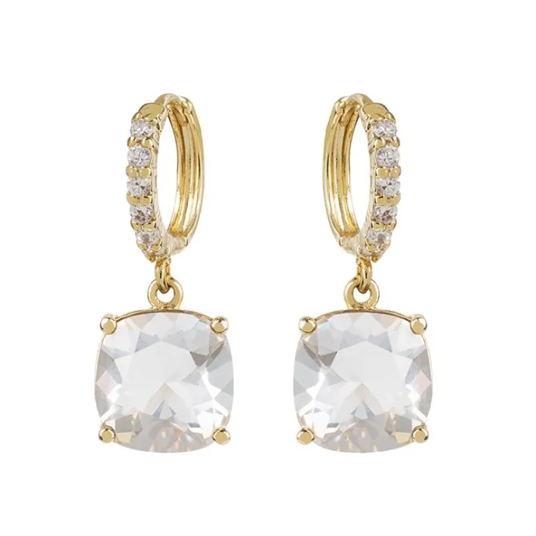 These Stylish Modern Earrings Perfectly Complement An Evening Look, The Square Cut White Crystal Has An Exquisite Sparkle Which Catches The Light And The Eye. It Is Accompanied By Smaller Brilliant Cut Crystals Set Into The Front Of The Hoop. They Are Inspired By A Pair Of Earrings Worn By The Princess Of Wales.