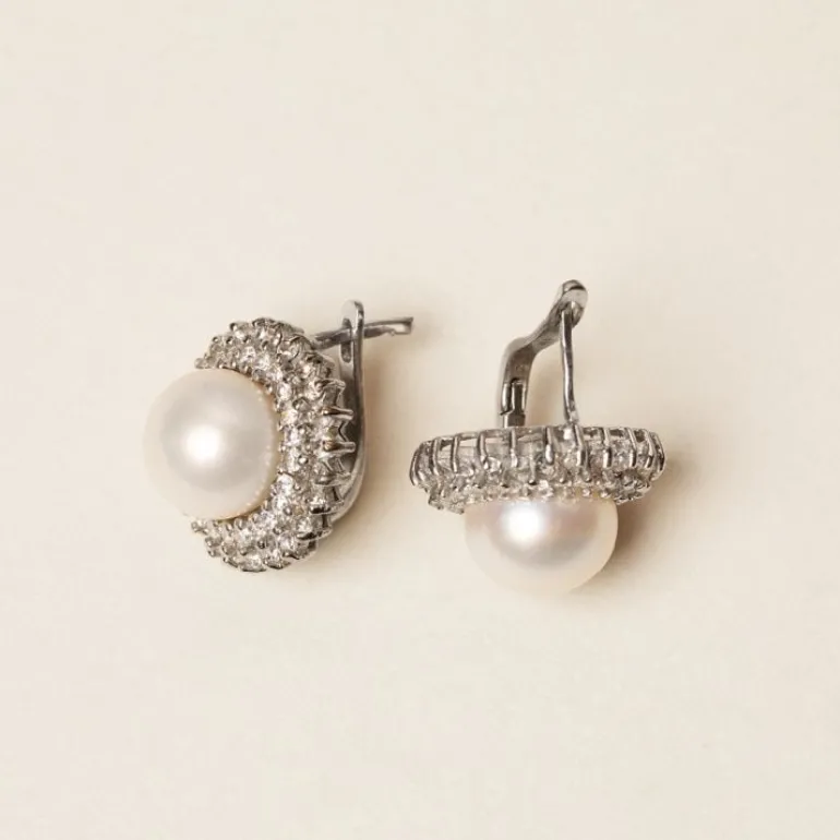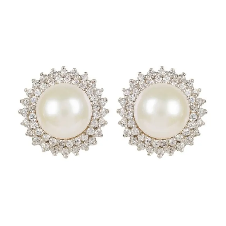 These Elegant Earrings Have A Freshwater Pearl At Their Centre, Delicately Surrounded By Sparkling Crystals.925 Silver Plated Posts.2.2 X 2.3 Cm.
