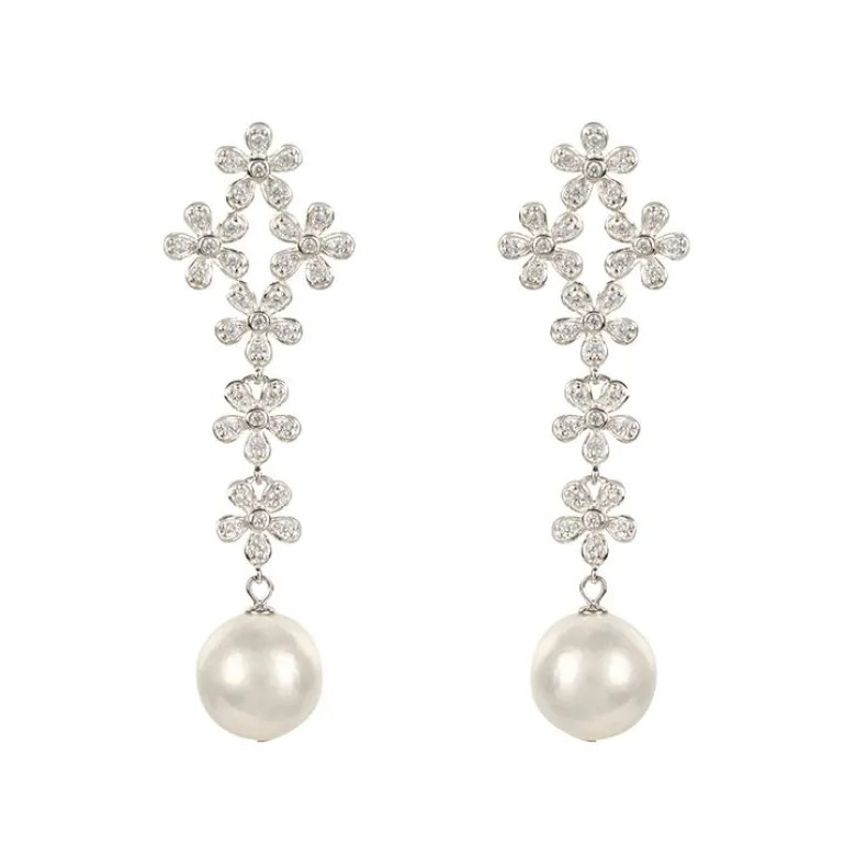 These Elegant Earrings Have Intricate Crystal, Floral Detail And Are Beautifully Finished With A Freshwater Pearl Drop.