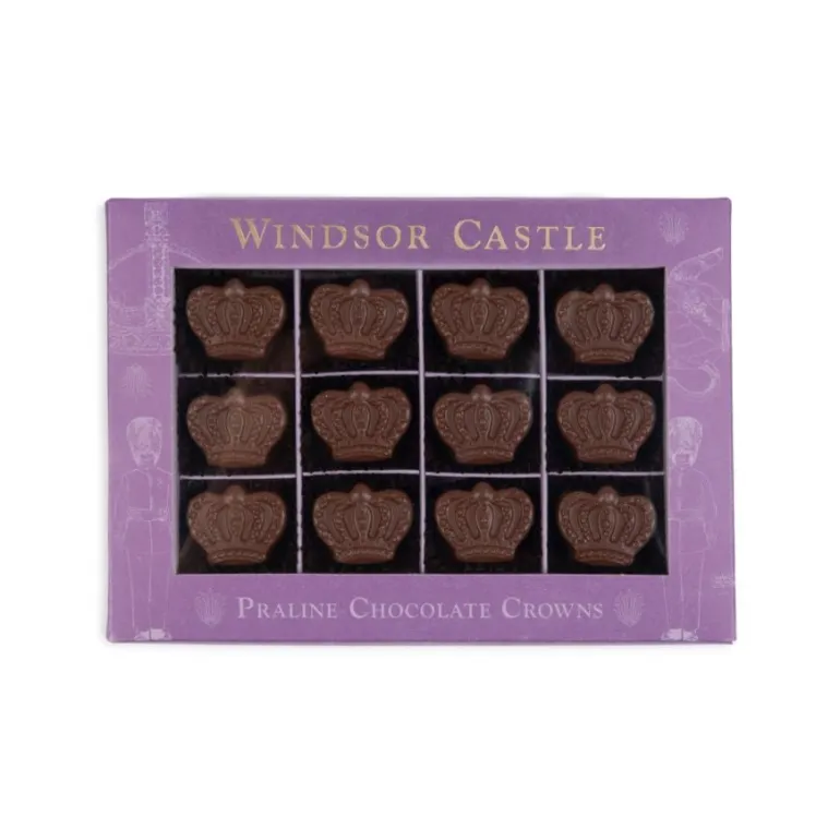 Impress Your Guests With These Delectable Milk Chocolate Crowns. Filled With A Delicious Nutty Praline, These Moreish Chocolates Are Beautifully Presented In A Purple Gift Box Decorated With Sketched Items From Across The Royal Collection.