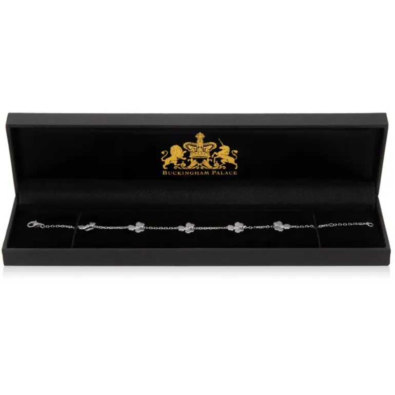 Representing The Beautiful Country, Ireland, This Elegant, Sterling Silver Chain Bracelet Is Interspersed With Five Solid Silver Shamrock. Each Dainty Shamrock Is Centred With A Sparkling Cubic Zirconia. To Mark The Magnificent Celebrations Of His Majesty King Charles Iii’S Coronation, This Exquisite Piece Of Jewellery Has Been Stamped With The Coronation Hallmark, 2023 Making It Truly Unique.