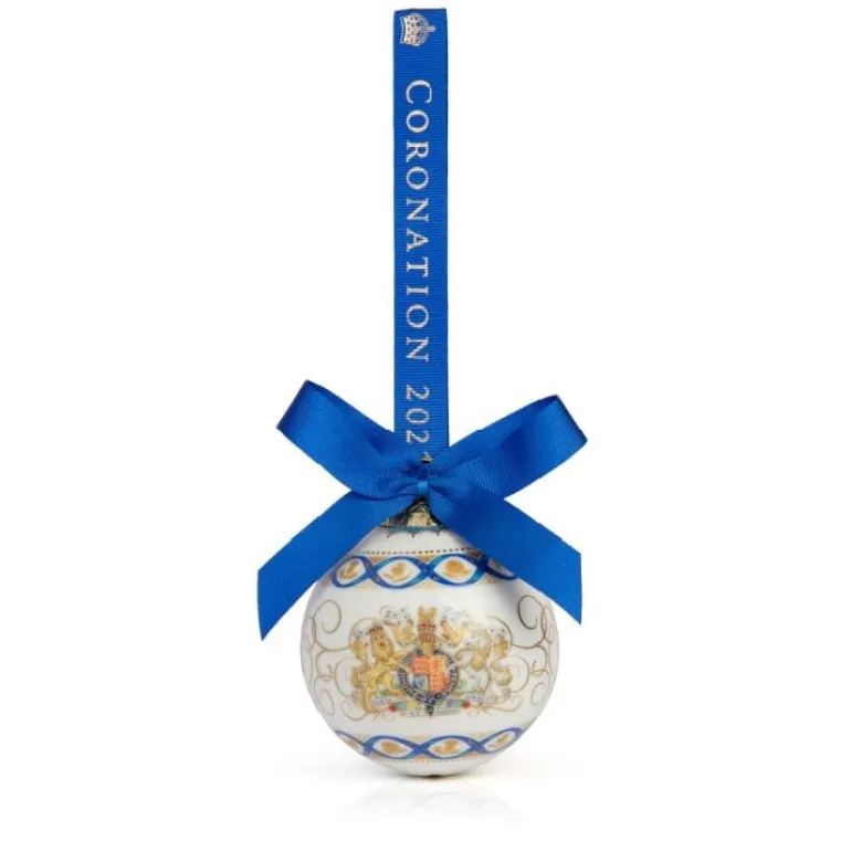 This Charming Coronation Bauble Features The Royal Coat Of Arms At The Centre. The Coat Of Arms Is Surrounded By An Exquisite Design Of Oak Leaves Representing Strength. The Oak Leaves Are Joined By The National Emblems Of The Four Nations Of The United Kingdom – Thistle, Rose, Shamrock And Daffodil Within An Entwined Ribbon That Represents The Supportive Partnership Between The King And The Queen.